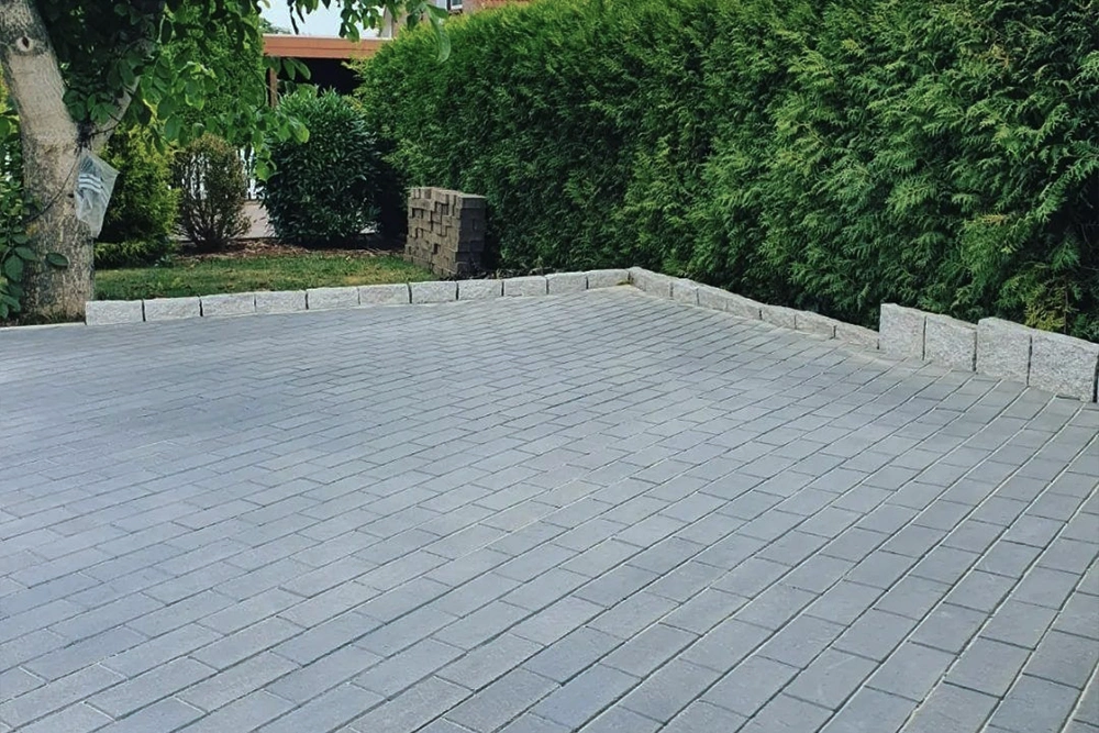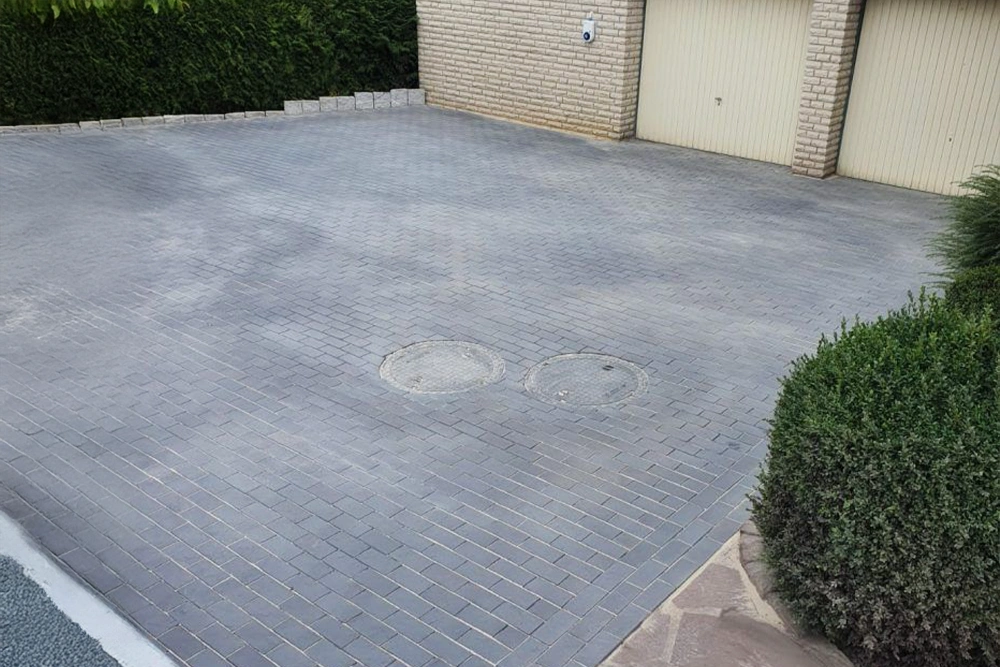Betonpflaster bietet vielseitige Formen, Farben und Strukturen. Ideal für moderne Einfahrten oder funktionale Flächen mit hoher Belastung.