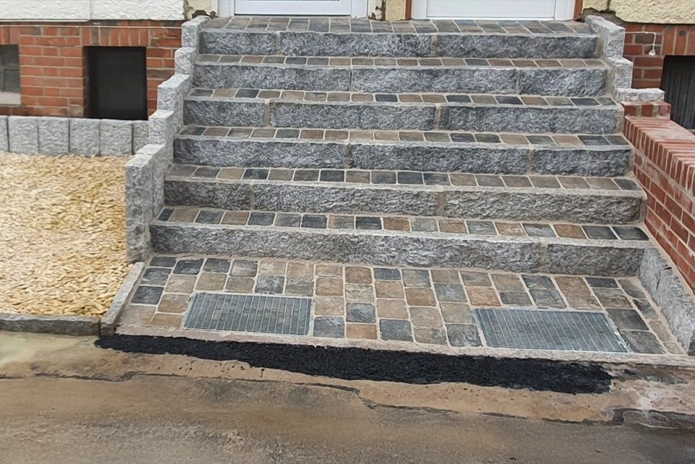 Wir gestalten sichere, trittsichere Zuwegungen und Außentreppen, die Funktionalität mit Ästhetik verbinden.