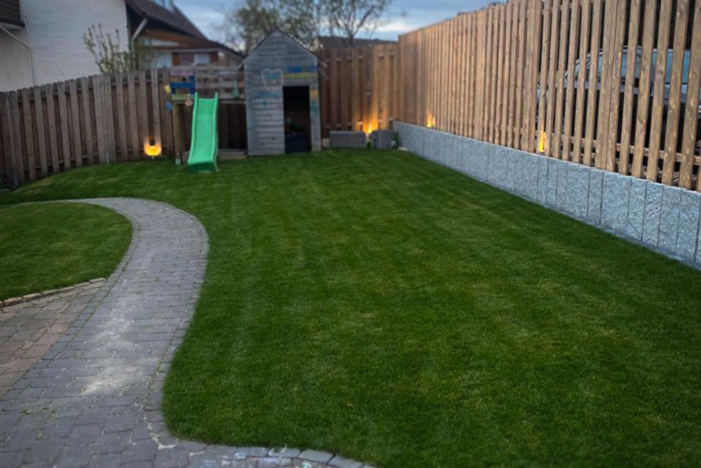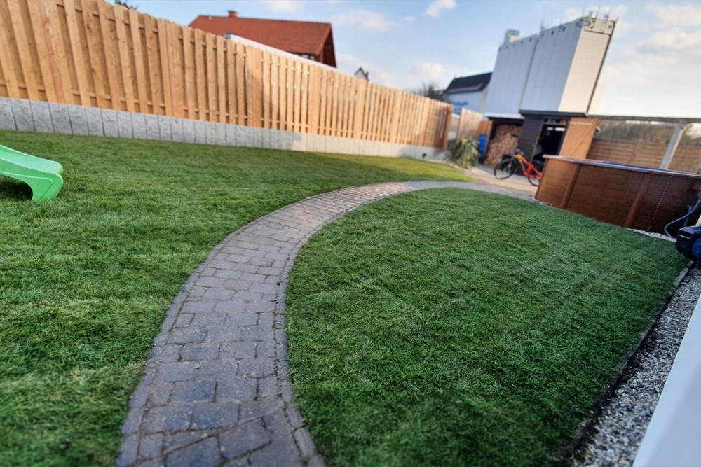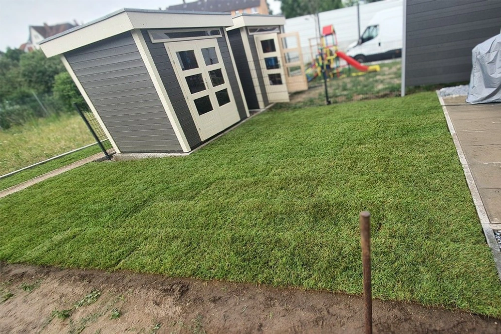 Für schnelle und gleichmäßige Ergebnisse verlegen wir Rollrasen in bester Qualität. Innerhalb weniger Stunden entsteht eine dichte, nutzbare Grünfläche.